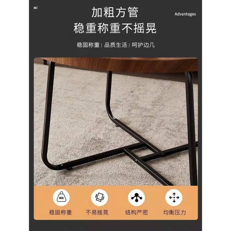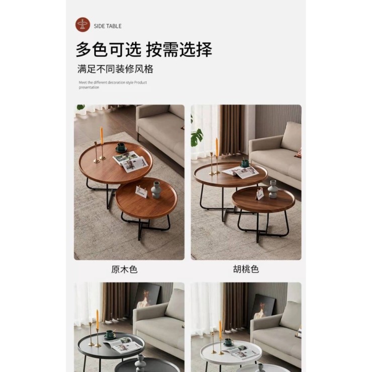 Brown Round Nesting Coffee Table with Four Steel Legs