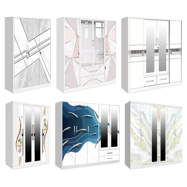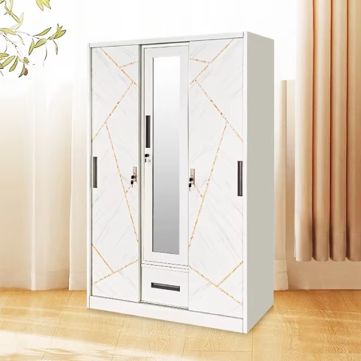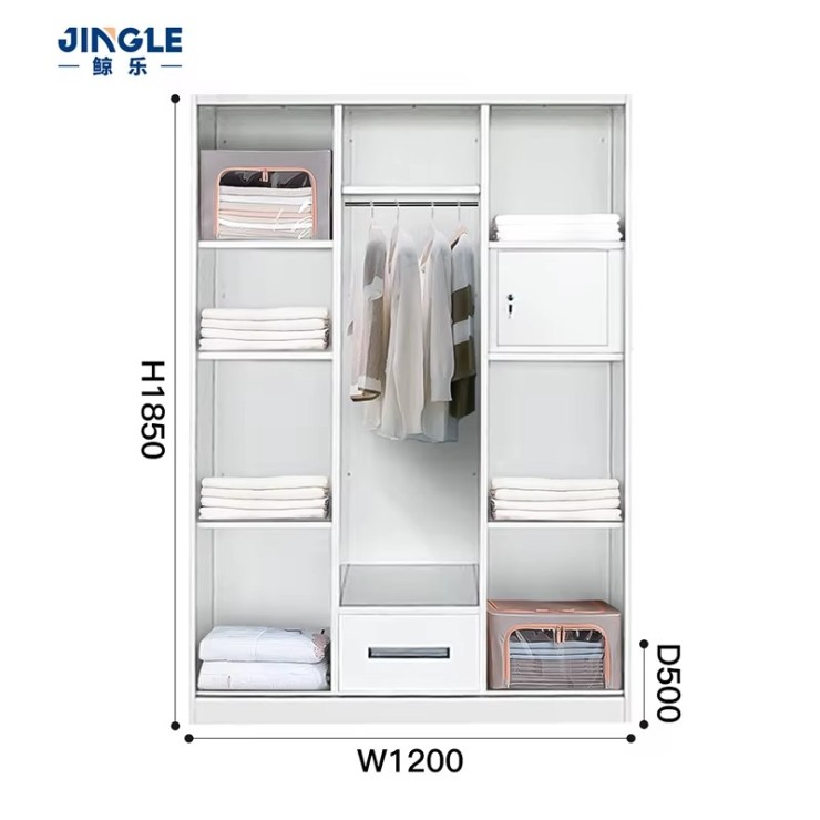 JingLe Bedroom Furniture Customized Logo Cheap 3 Door White Wardrobe Closets