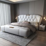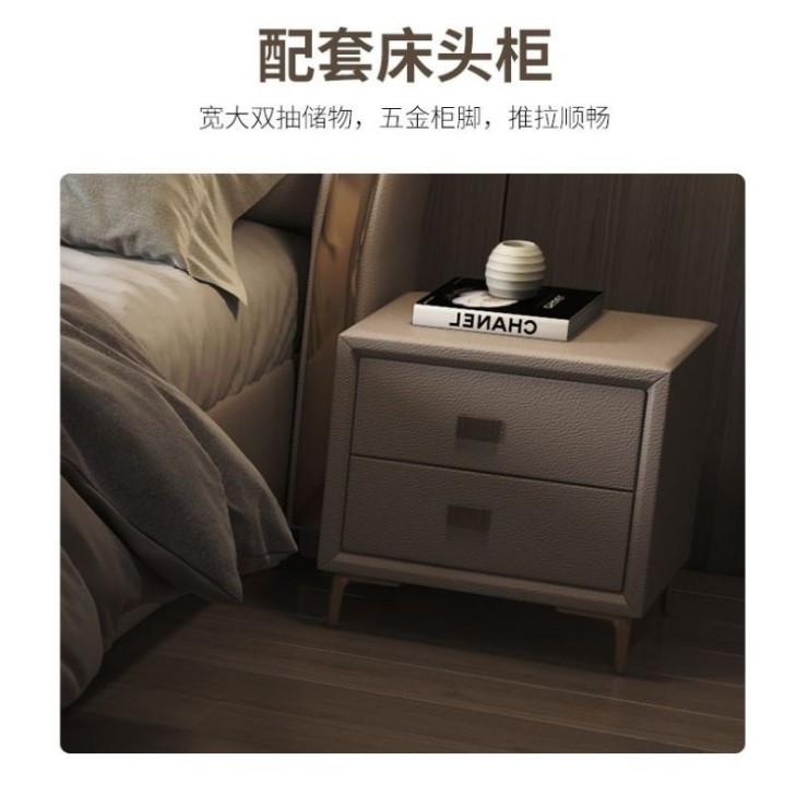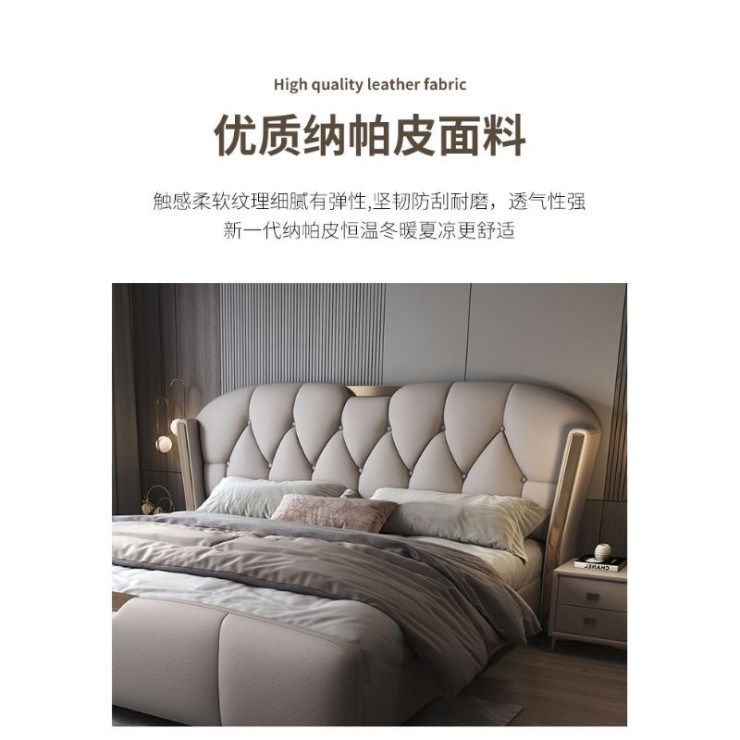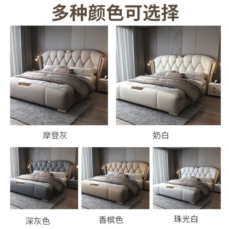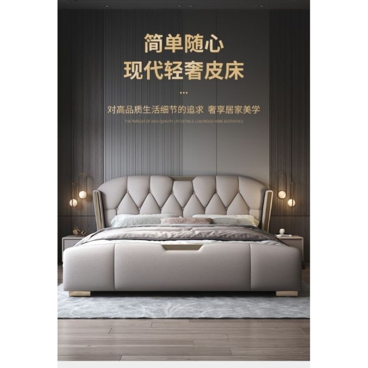 Light luxury leather bed modern minimalist master bedroom 1.5m1.8m double bed 2m big bed solid wood storage Italian wedding bed