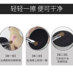 Just need to swipe your makeup brush over the sponge a few times, the powder cosmetics(removing powder color/shadow color, not for liquid) The excess powder will drop into the charcoal sponge filter in the metal tin.