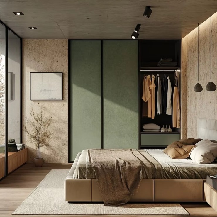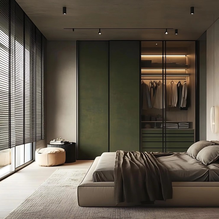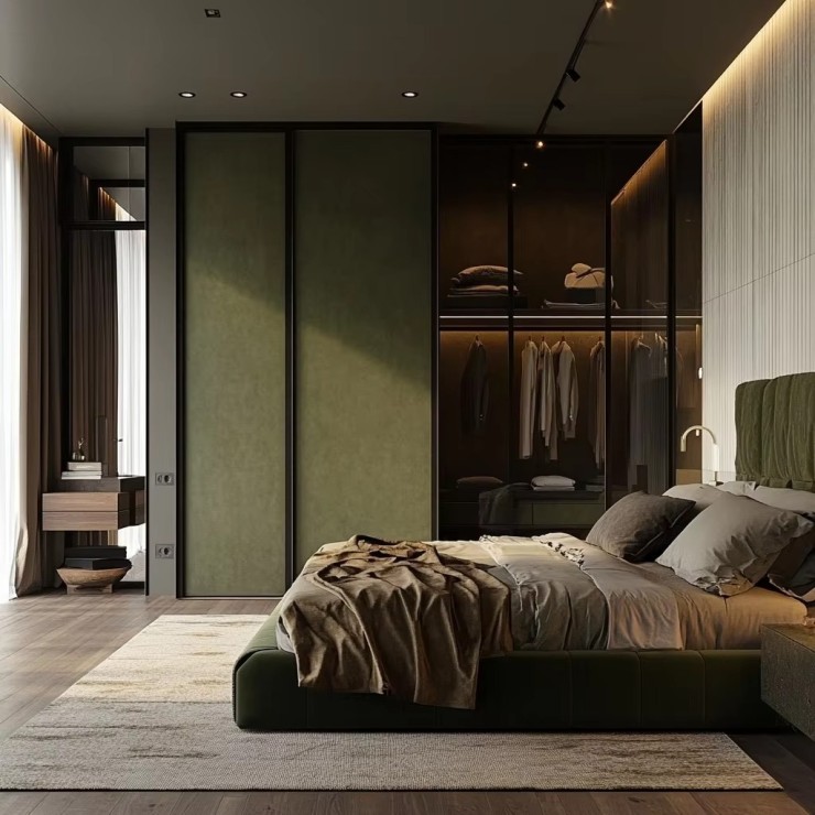 Modern Custom Pre-Installed Green Lacquer Wardrobe Built-In Sliding Door Closet Furniture for Bedroom for Villas Apartments