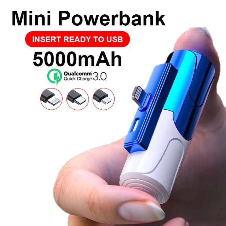 2. Capsule power bank 2.0 capacity = 5000 mAh, which can bring 100% power to the mobile phone
