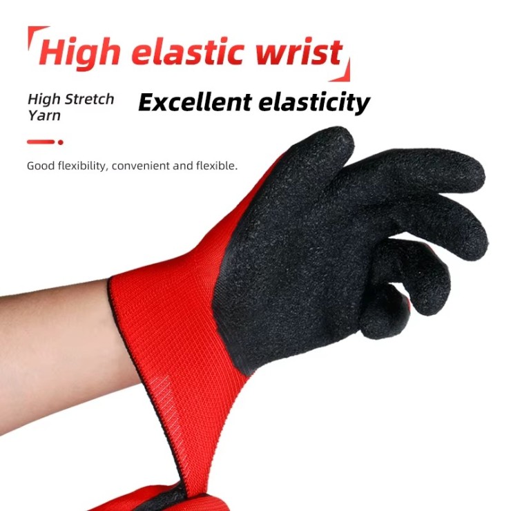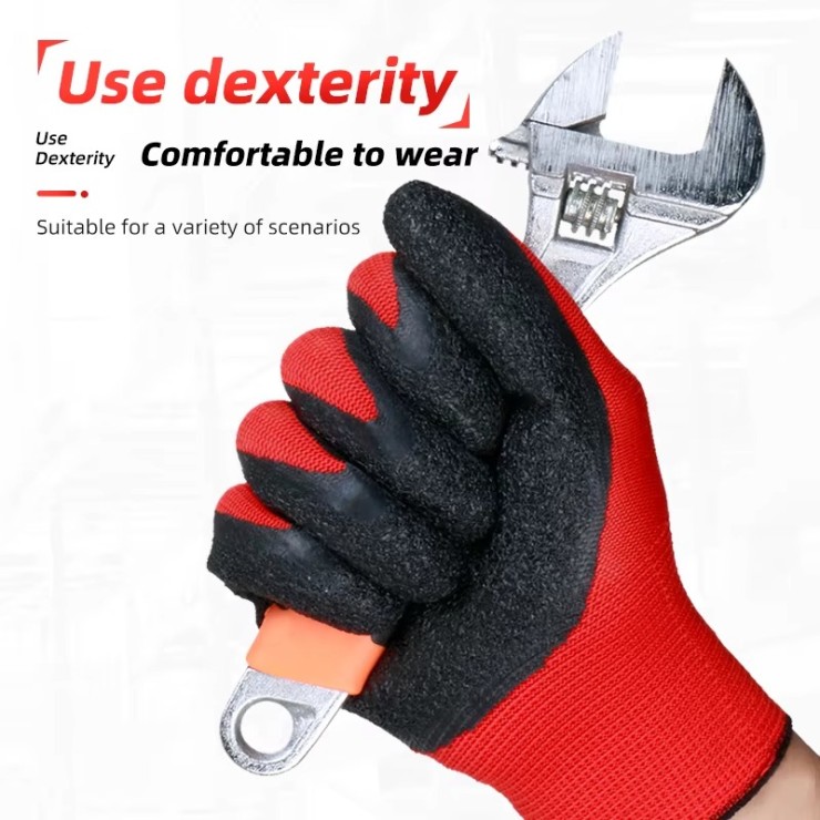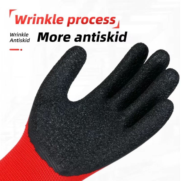 Wholesale Anti-Slip Industrial Rubber Crinkle Latex Coated Safety Work Gloves for Construction Tools